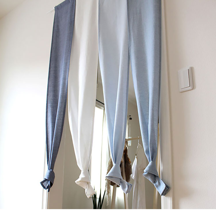 陽の光を程よく通す、透け感のある薄手の生地。裾を結んでアレンジすれば、違った雰囲気も楽しめます。結ぶ位置を変えてみても◎