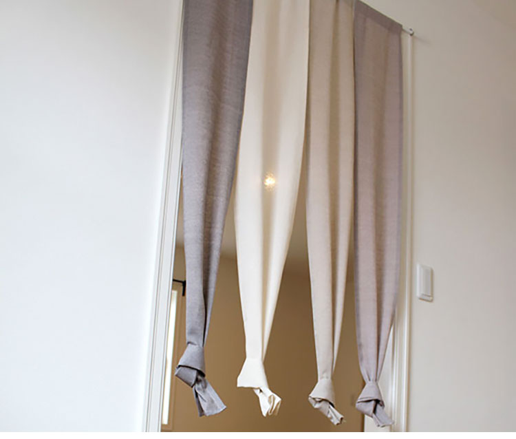 突っ張り棒などを通して掛けるだけで、簡単に設置できます。