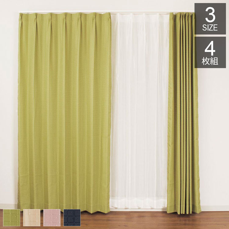 カーテン 4枚セット 幅100cm 丈135cm 178cm 200cm 洗える タッセル付き UVカット カーテンセット ドレープカーテン2枚 レースカーテン2枚 4枚セット 無地 カーテン 北欧 ミラーレース(代引不可)