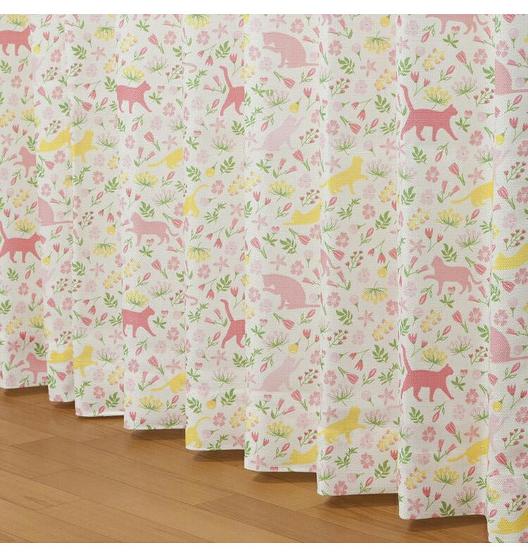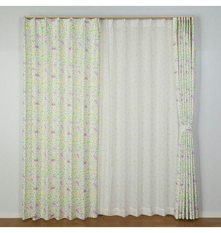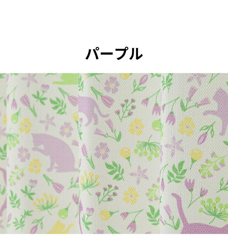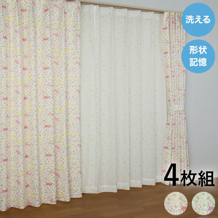 ドレープカーテン レースカーテン付き 4枚セット 4枚組 猫柄 形状記憶 ウォッシャブル ねこ ネコ 模様 おしゃれ かわいい 子ども 子供 幅100cm 丈135/178/200cm(代引不可)