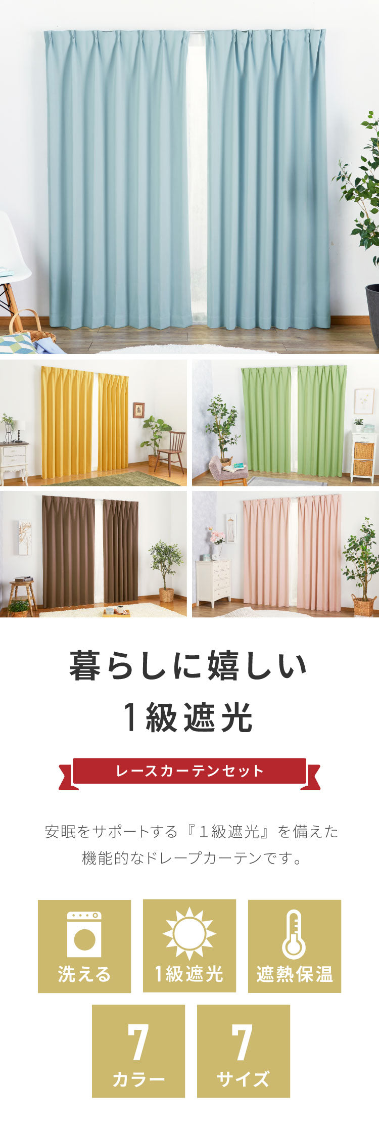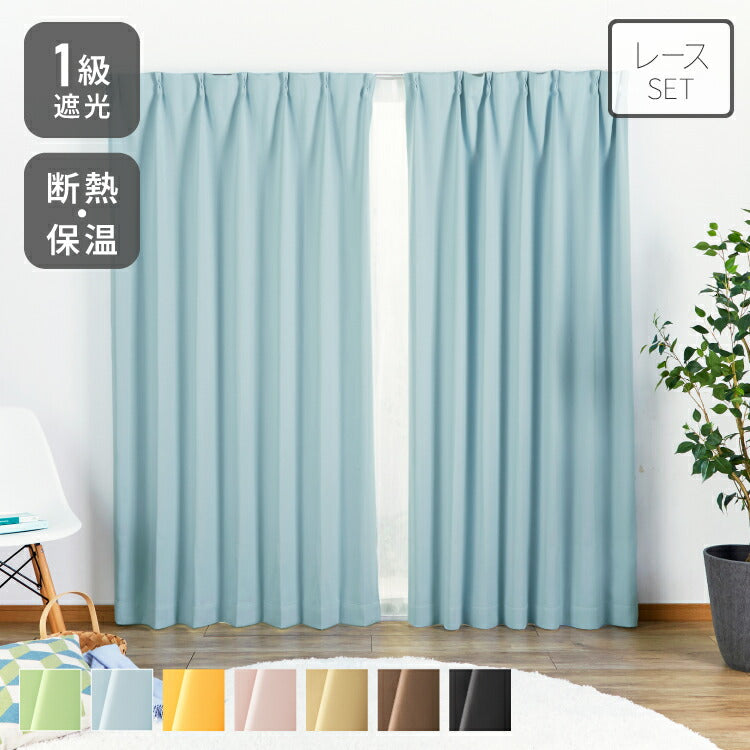 1級遮光のドレープカーテンとレースカーテンの4枚セットです。