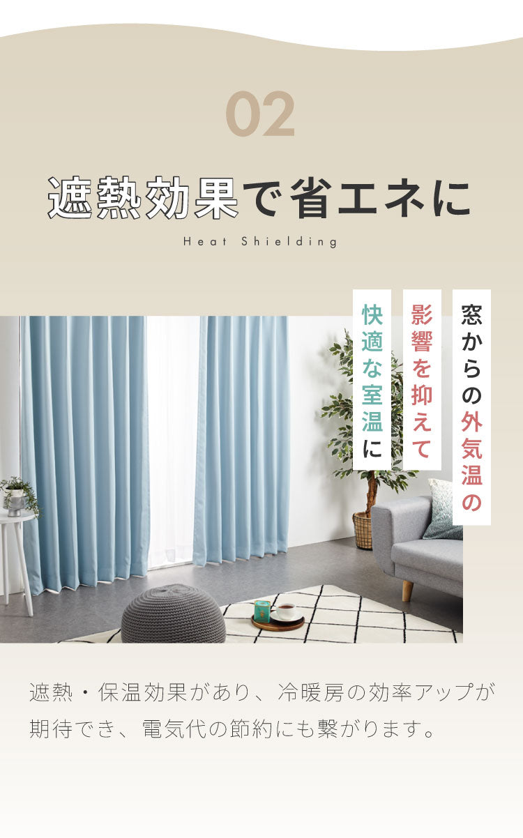 1級遮光、遮熱50%、保温30%(ドレープカーテン)
