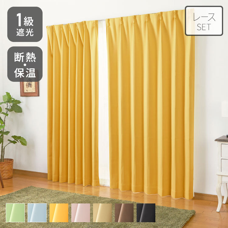 1級遮光のドレープカーテンとレースカーテンの4枚セットです。