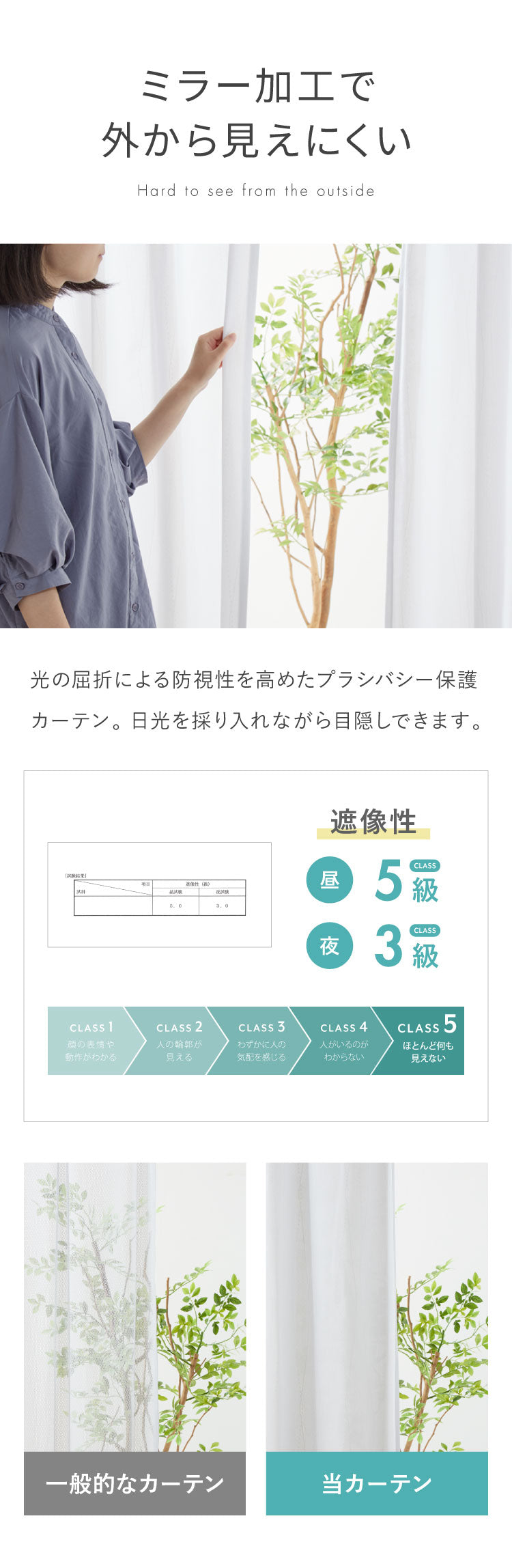 レースカーテンは、遮像加工を施しているため外から見えにくく、