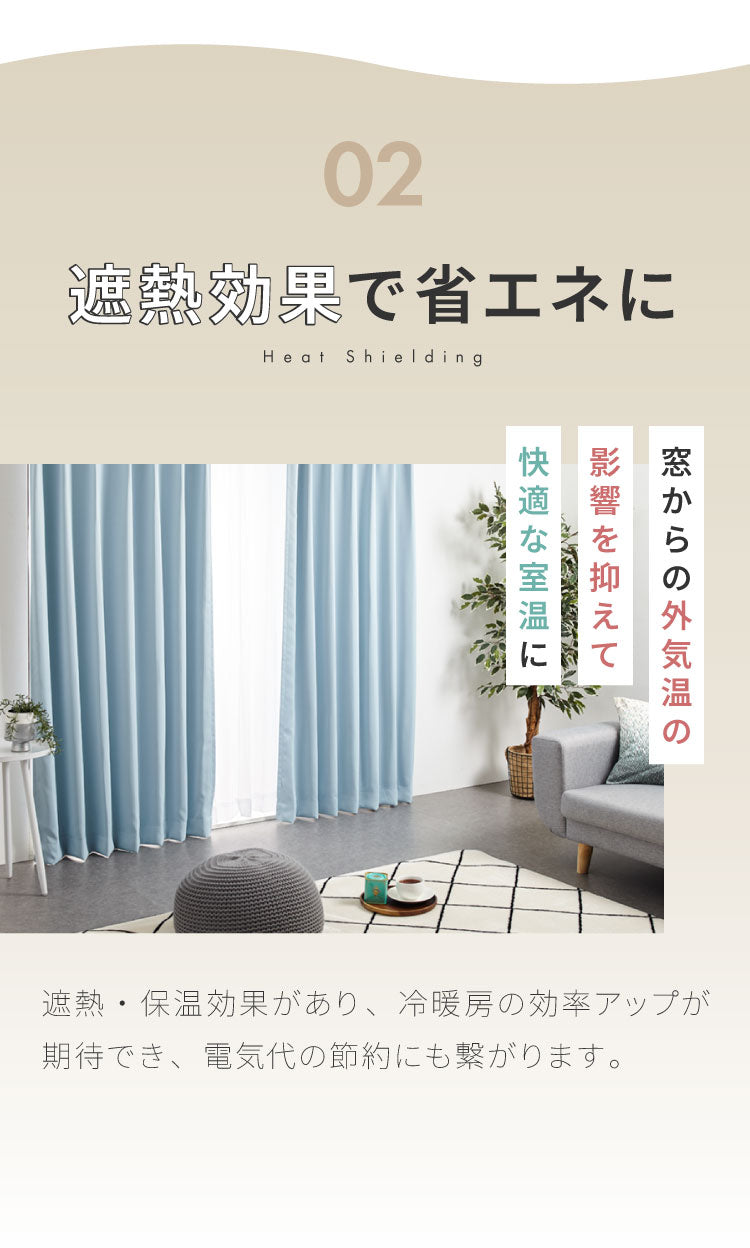 1級遮光、遮熱50%、保温30%(ドレープカーテン)