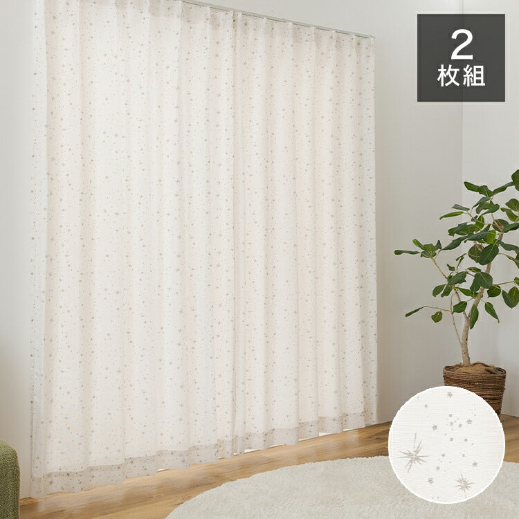 レースカーテン 星柄 2枚組 UVカット 幅100 丈133 176 198 紫外線 昼夜見えにくい 遮像レース 遮像 ミラーレース 防犯 断熱 保温 省エネ エコ 節電 子供 子供部屋 ウォッシャブル 洗濯可能(代引不可)