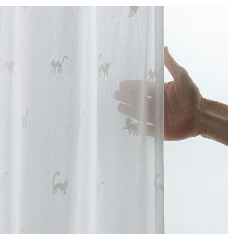 レースカーテン 2枚組 幅100cm 丈133/176/198cm 猫柄 ねこ 形状記憶 ウォッシャブル 洗える 洗濯可能 ネコ おしゃれ 子供 子ども かわいい 柄カーテン(代引不可)