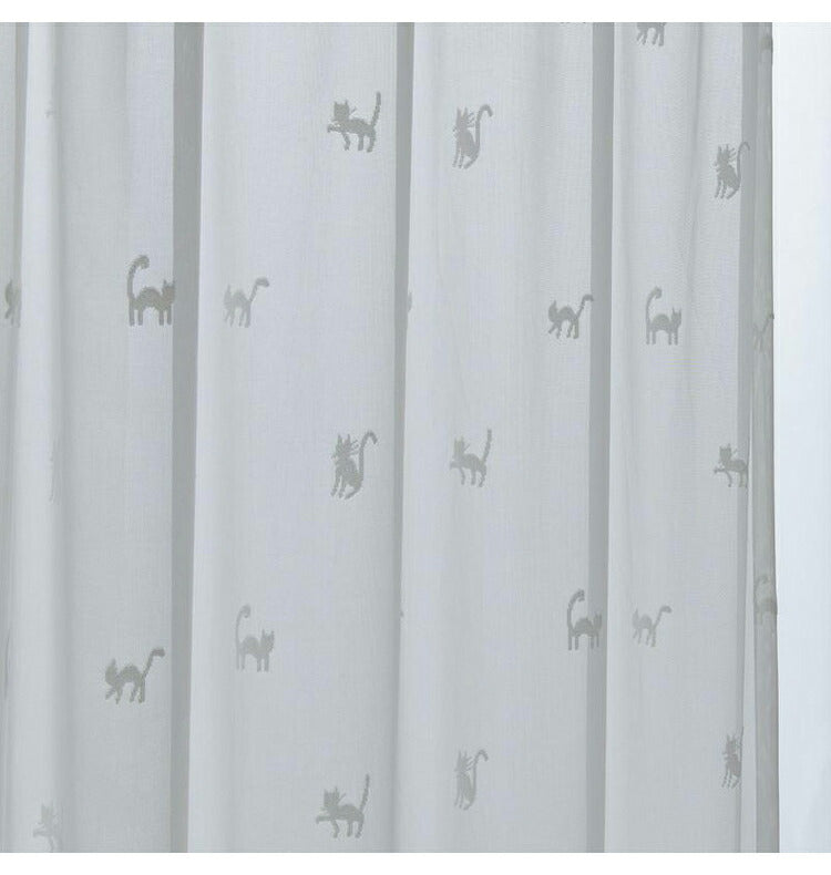 シルエットのねこが立体的にプリントされたレースカーテン。