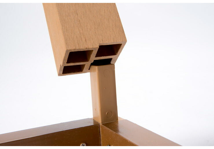 人工木で製造した、ウッドデッキと専用コーナーパネルセット。