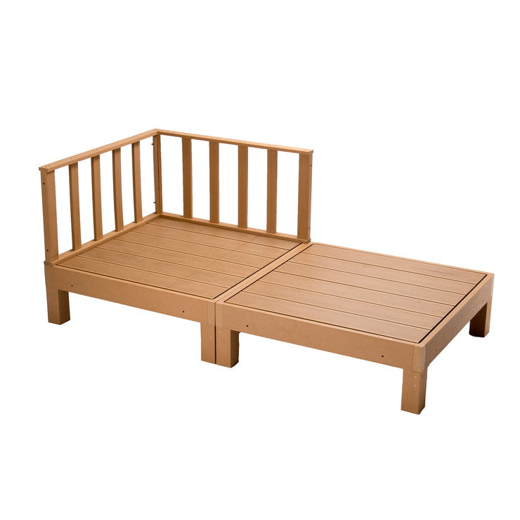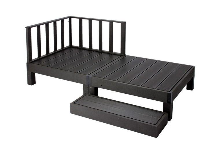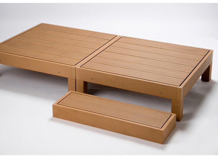 【人工木 ウッドデッキ 本体2点+踏み台+コーナーパネル 4点セット】樹脂 縁台 DIY 腐りにくい 水洗い 連結 ウッドパネル ステージ 北欧(代引不可)