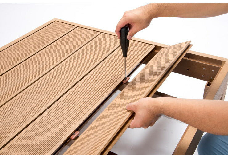 特殊加工で製造した樹脂製デッキです。人工木なので、シロアリなどの心配も無用。