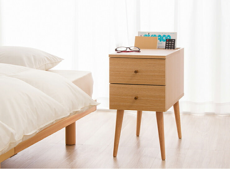脚のみ取り付けのベッドサイドテーブル。温かみのある北欧テイストのシンプルなデザインです。
