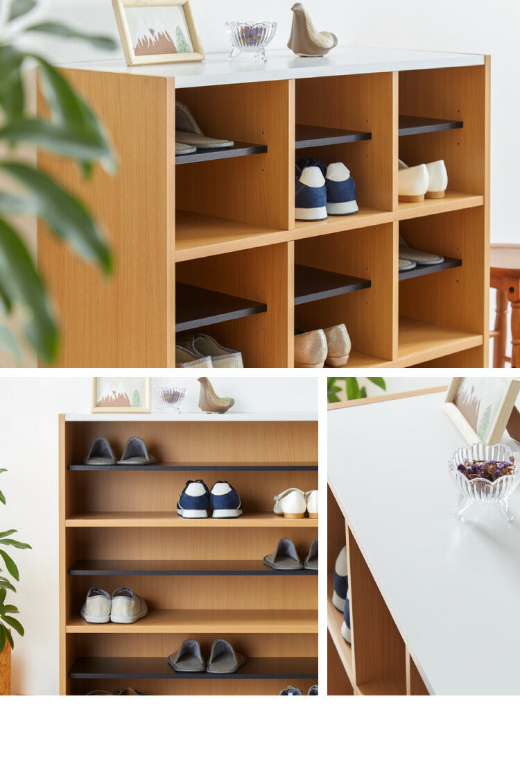上段にスリッパ、下段に靴を入れる設計で、中棚は3段階調整できます。