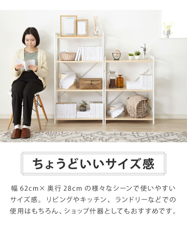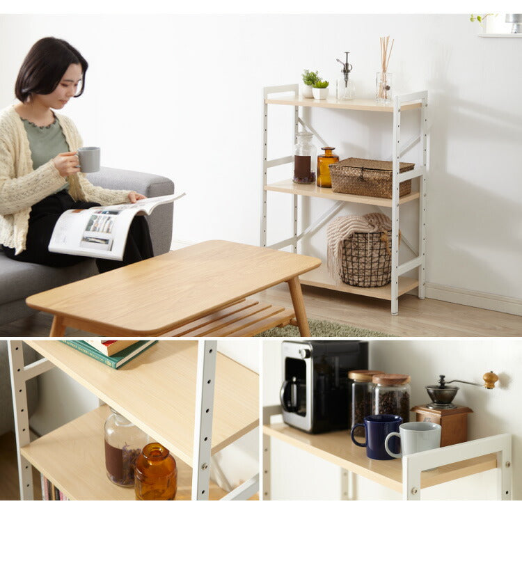 棚板の高さは5cm間隔に組み替えることができ、漫画本やカバンなど大小さまざまなものを収納可能。