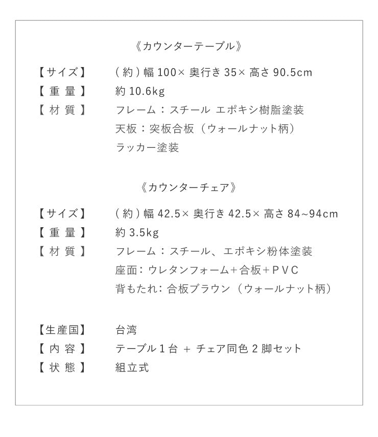 タムカウンターテーブル:幅100×奥行き35×高さ90.5cm
