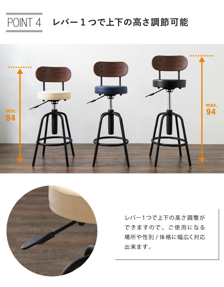 天然木 カウンターチェア 背もたれ付き タムチェア 木製 組立一分 タム材 おしゃれ スツール バーチェア チェア イス 椅子 ヴィンテージ 法人注文対応(代引不可)