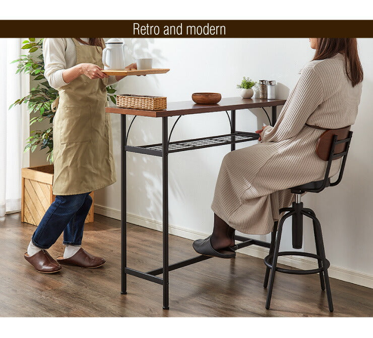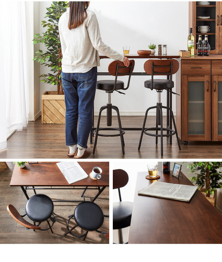 コンパクトでおしゃれなカウンターテーブル。ウォールナット材とスチールの組み合わせが男前な雰囲気を醸し出します。
