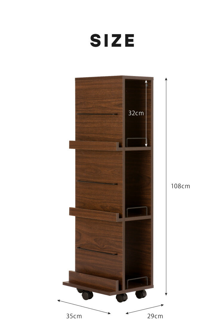 マガジンラック ラック 本棚 ディスプレイラックキャスター付き 棚 本収納 家具 3段 大容量 ラック ブックスタンド 雑誌 幅35 ダイニング リビング オシャレ(代引不可)