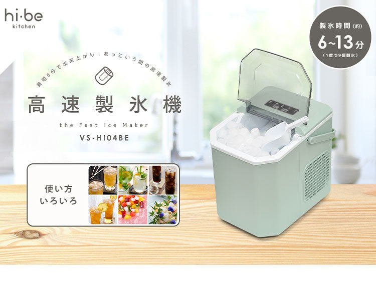 高速製氷機 家庭用 氷 自動製氷機 ミントグリーン アイスメーカー 大人数 大容量 アウトドア パーティ お酒 晩酌 自動停止 バーベキュー 釣り 氷 製氷機 簡単操作 氷作り 製氷 VS-HI04BE-MT
