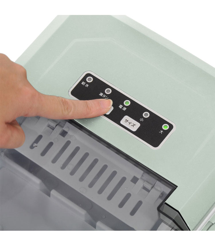 水を入れてボタンを押すだけで手軽に製氷できる高速製氷機。約6~13分ほどで1度に9個の氷が出来上がります。一度ボタンを押せば停止ボタンを押すまで、氷ケースがいっぱいになるまでドンドン氷を作ります。