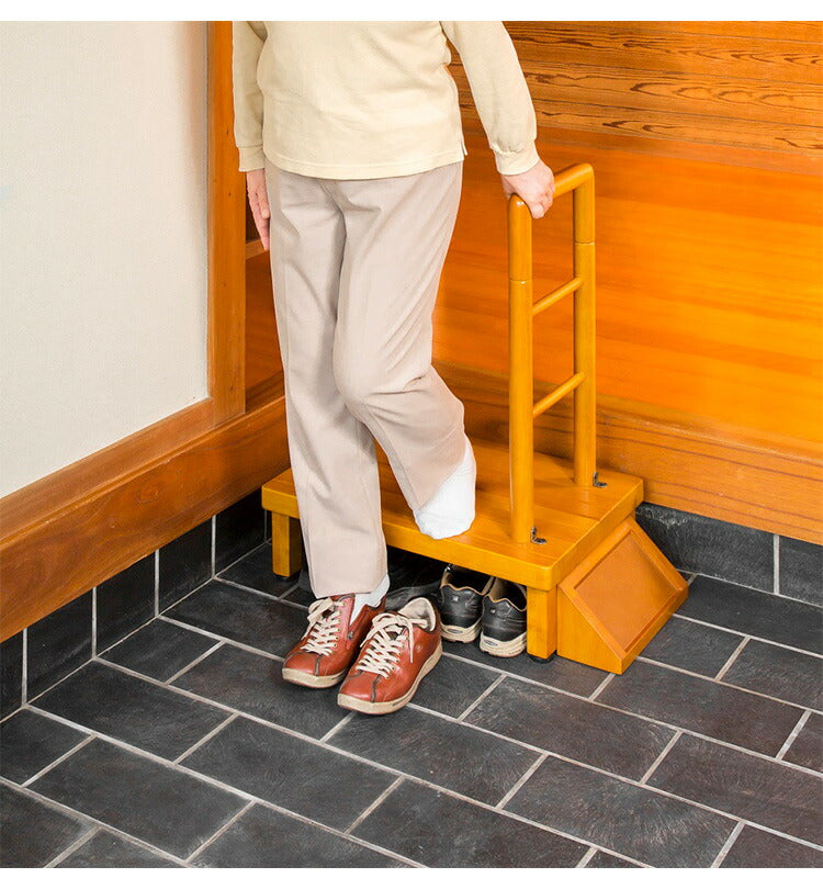 手すり付玄関台 幅60cm 玄関 踏み台 片側手すり付き 60cm幅 高齢者 ステップ 60幅 手すり 木製 収納 昇降補助 介護 転倒防止 補助具 玄関ステップ 段差 靴 昇降台 足場 収納