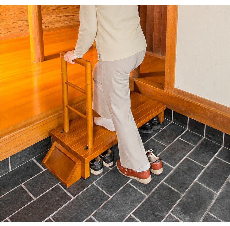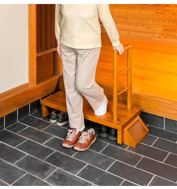 手すり付玄関台 幅90cm 玄関 踏み台 片側手すり付き 高齢者 ステップ 手すり 木製 収納 昇降補助 介護 転倒防止 補助具 玄関ステップ 段差 靴 昇降台 足場 収納