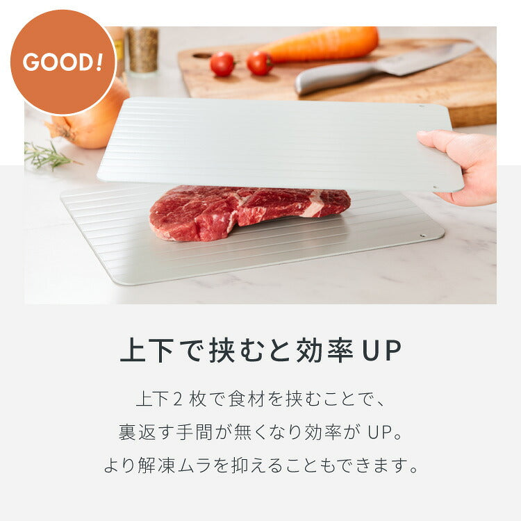 解凍プレート 急速解凍 解凍皿 時短 粗熱取り 急速冷凍 アルミ 解凍 皿 プレート まな板 肉解凍 自然解凍 解凍板 国内試験済み おしゃれ(代引不可)【メール便配送】