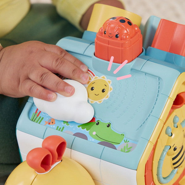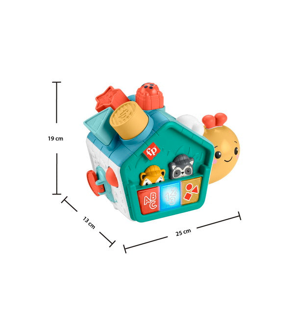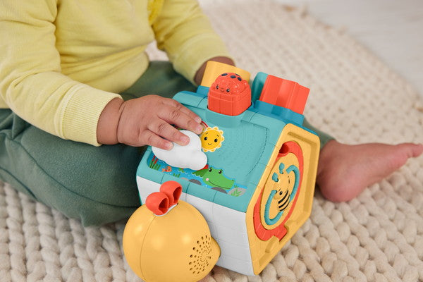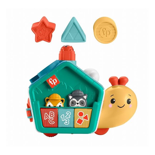でんでんむしみたいに、自分のペースで前に進もう!ブロックやボタンなど、手指の発達を促す5つの面に10個以上のしかけ!てんとうむしの赤いボタンを押すと、でんでんむしの角が上下に動いてすいすい前進してはいはいを促します。発見がいっぱいのゆかいなおともだち。[1]日本語と英語の知育コンテンツを収録!ABC・数字・かたちのボタンを押すと、ライトが点灯!アルファベット、数字、形を英語と日本語で教えてくれます。[2]形合わせブロックであそぼう!かたつむりの背中で、型合わせのブロックで遊べます。遊びおわったら、側面の
