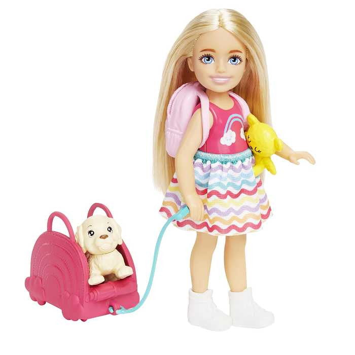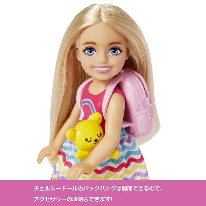 チェルシーと一緒に豊かな想像力を広げましょう!虹色のドレスを着たかわいいチェルシーと、子犬、おでかけアクセサリー6つがセットになっています。子犬をペットキャリーに入れて、出し入れ可能なリュックに荷物をつめて、ヘッドフォン、タブレット、テディベアも忘れずに。チェルシーと一緒に楽しい冒険の始まりです。