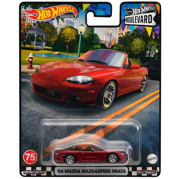 アメリカではマツダMX-5ミアータという名称で発売され、現行の4代目に至るまで高い人気を博しているオープンスポーツカー。ホットウィールでは初代と4代目をすでに製品化しているが、今回の2代目(日本ではNB型と呼ばれる)は初登場となる。なお、ホットウィールがモチーフとしたのは、日本では僅か300台しか販売されなかったターボ仕様をモチーフにしている。北米でもターボ仕様は、名称も単なるミアータではなくマツダスピード ミアータとされた。マツダスピード ミアータの北米仕様は専用意匠の17インチホイールや6速MT、エア