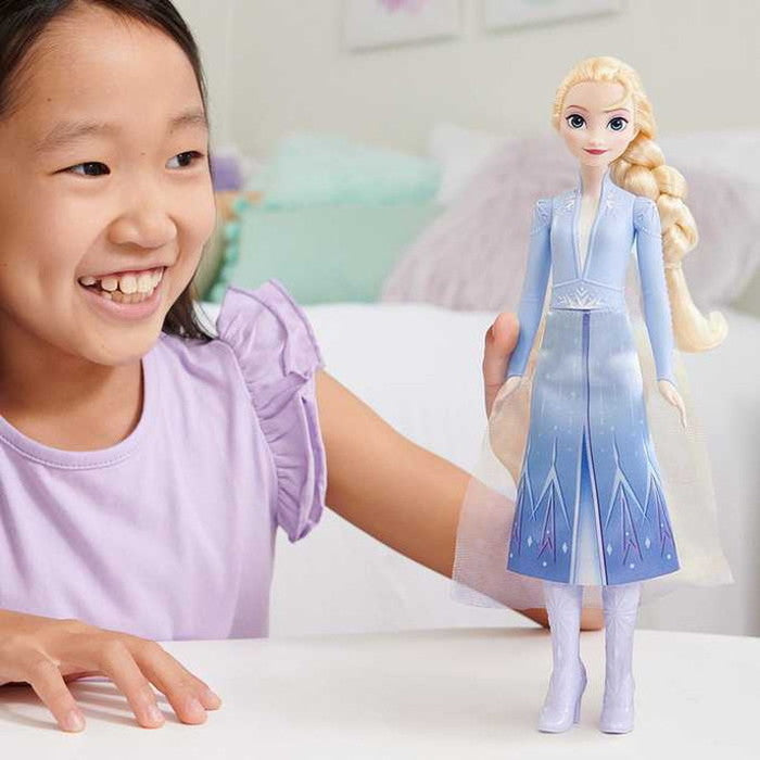 ディズニー映画『アナと雪の女王2』に登場する、自信に満ち溢れたパワフルな女王をイメージしたエルサのドールです。映画で登場するトラベルファッションを再現していて、ブーツや布製のケープとスカートが含まれます。エルサの長いブロンドの髪は、映画と同じようにエレガントなサイド編み込みに仕上げられています。お子さまが大好きな映画のシーンを再現したり、ワクワクするような冒険をするのに最適なギフトです。