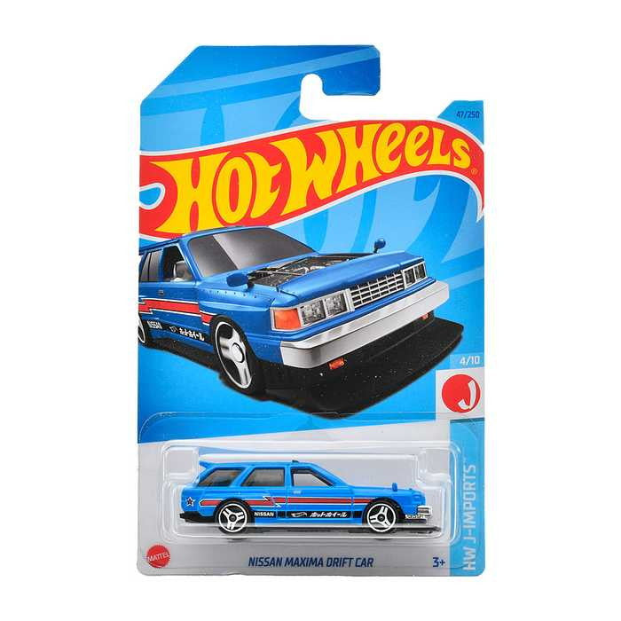 日本では6代目ブルーバードとして発売された910型をベースに、北米日産の最上級車としてアップスケールされたのが初代マキシマ。車型はセダンとステーションワゴンの2種が存在し、ワゴンは日本仕様(ADワゴン)比で345mmも全長が大型化されている。マキシマワゴンはアメリカでは“グロサリー・ゲッター(お買い物グルマ)”として使用されることがほとんどだったが、ホットウィールではエンジンをスカイラインGT-R用のRB26型ツインターボに換装、外観もオバフェンで武装したドリフト・マシーンにアレンジ。ホイールがこのマキシマから初採用の、日本では1990年代に人気だった『スーパーアドバン』風にデザインとなっているのも注目ポイント。