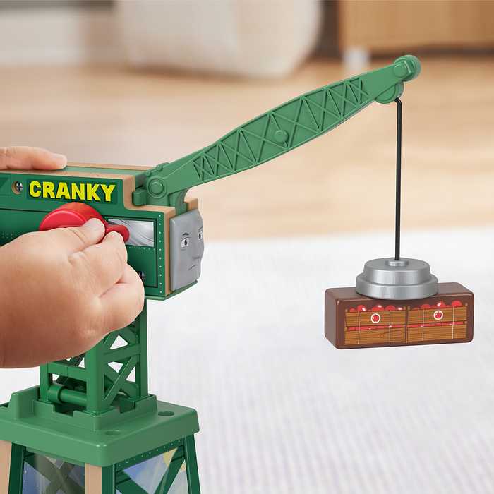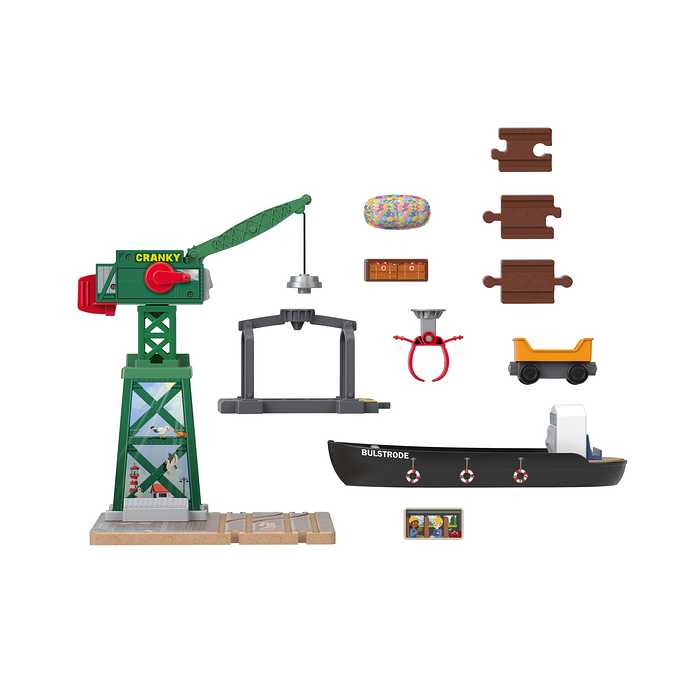 クレーンのクランキーはソドー島で一番ののっぽ。気難しいけど、とっても仕事熱心で頼りになる仲間。港で船の荷物の積み下ろしをしています。クレーンにはマグネットがついていて、エンジンを吊り上げられるようになっています。船のバルストロードもセットに含まれています。【素材:天然木、ABS、鉄】