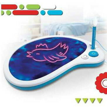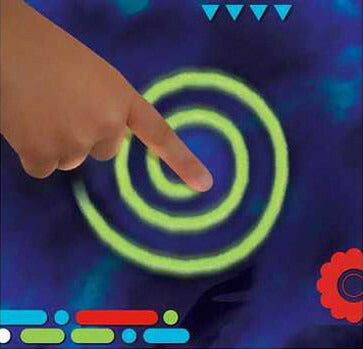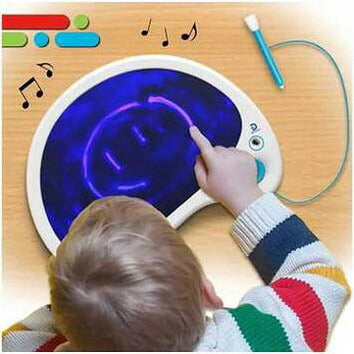 まるで絵の具でお絵描きしているみたい!アートパレットで自由にお絵かきしよう!鉛筆やクレヨン、マジックでは描けない独創的な表現ができるパレットです。付属のペンはヒモで本体にくっついているので失くしにくい!指でタッチして楽しむこともできます。パレット本体のボタンを押すと背景が12色に光り、楽しくパレット遊びができます。さらに楽しい音楽が全部で6曲入り!ボタンを押して切り替えることができます。