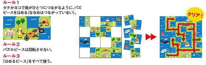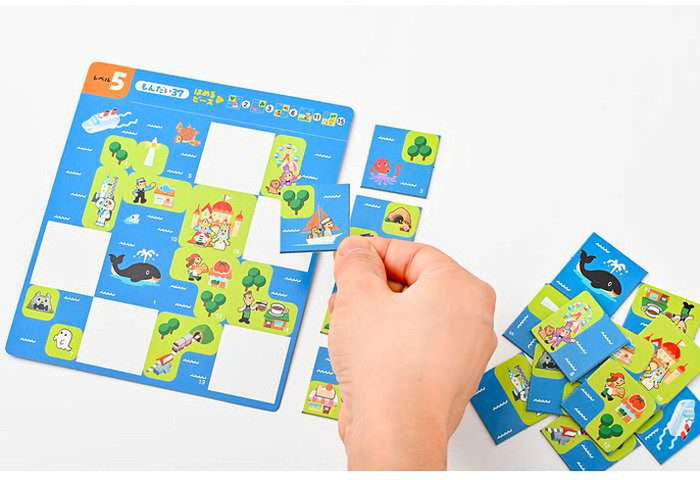 指定のピースを上手にはめて「島を全て1つにつなげる」パズルゲームです。問題の空欄にピースをはめて、1つの大きな島を完成させましょう。パズルは9ピースの問題と16ピースの問題の2種類で、レベルに応じた全70問。楽しみながら自然と問題解決能力を育むことが可能です!