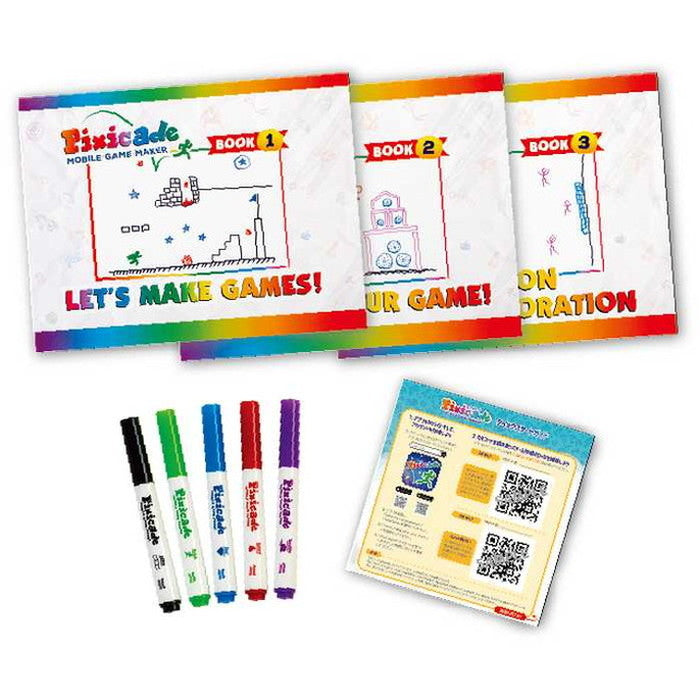 真っ白なキャンバスにオリジナルゲームをデザイン!自分が描いた絵は、スマホやタブレットの専用アプリで写真を撮るとゲームになる!ゲームタイプは8種類、作れるゲームは1600タイトル!完成したゲームは世界中のプレイヤーにシェアすることができ「いいね」を獲得することも!さあ、たくさんプレイしてゲームクリエイターを目指そう!ゲームデザインブック:3、マーカー:5 (5色 各1)、クイックスタートガイド:1