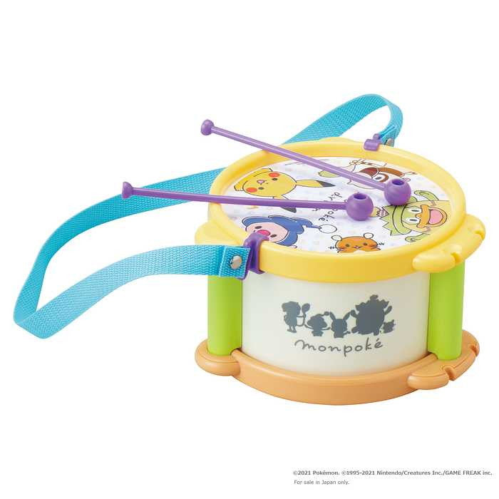 ピカチュウたちとはじめての楽器遊び!ドラムはどんな音がするかな?キャラクターたちがひょっこり顔を出した打面が可愛らしく、側面にはシルエットアートも施した、モンポケカラーのおしゃれなドラムです。