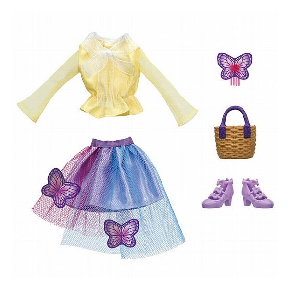 パピヨンをモチーフに、軽やかでピクニックに出かけたくなるようなファッションの#Licca(ハッシュタグリカ)シリーズのウェアセットです。