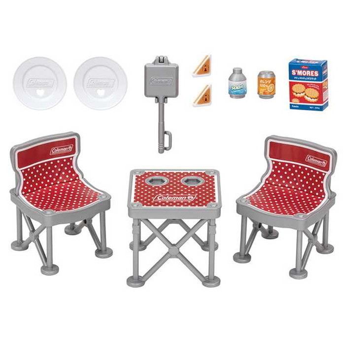 コールマンデザインのチェア&テーブルがリカちゃんサイズに!!大人気のホットサンドクッカーや小物もセット。