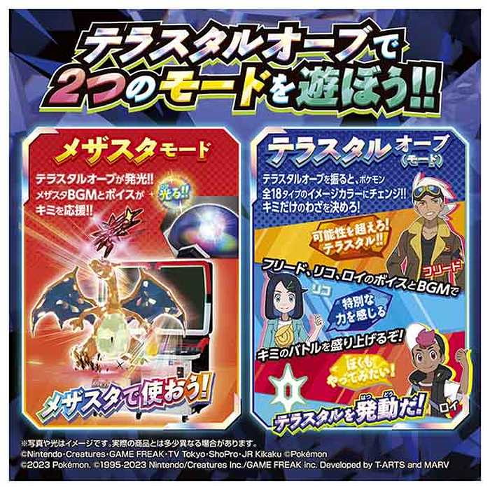 ■ポケモンメザスタと超連動!テラスタルオーブはポケモンメザスタと連動し、テラスタルを確実に発動することができるぞ!メザスタのバトルを有利に進めよう!さらにメザスタで使えるテラスタルできるリザードンのスペシャルタグが付属!■遊べるモードは「メザスタモード」と「テラスタルオーブ(モード)」の2種類!・メザスタモードテラスタルオーブが発光!メザスタBGMとボイスがキミのメザスタでのバトルを応援してくれるぞ!・テラスタルオーブ(モード)テラスタルオーブを振ると、ポケモン全18タイプのイメージカラーにチェンジ。テラスタル発動だ!キミだけのわざを決めろ!フリード、リコ、ロイのボイスとBGMで、キミのバトルを盛り上げるぞ!※ポケモンメザスタでテラスタルを発動させるためには、テラスタルタグが必要です。※テラスタルは1バトルにつき1回発動できます。