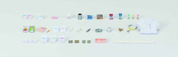 聴診器や診察用のベッド、薬、白衣などの小物が豊富についています。