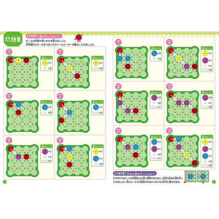 ロジカルロードメーカーは、スタートからゴールまでの道をつなぐパズルです。道となるピースは5種類。使えるピースの数や種類、ゴールまでのピースがはまる方向や距離といった情報を元に、ピースの置きかたを論理的に考えてパズルを解きます。パズルを解いたら、ボールをホイールローダーに乗せてスタート! うまくボールをゴールへ運べるか、ハラハラドキドキしながら楽しく答え合わせができます。