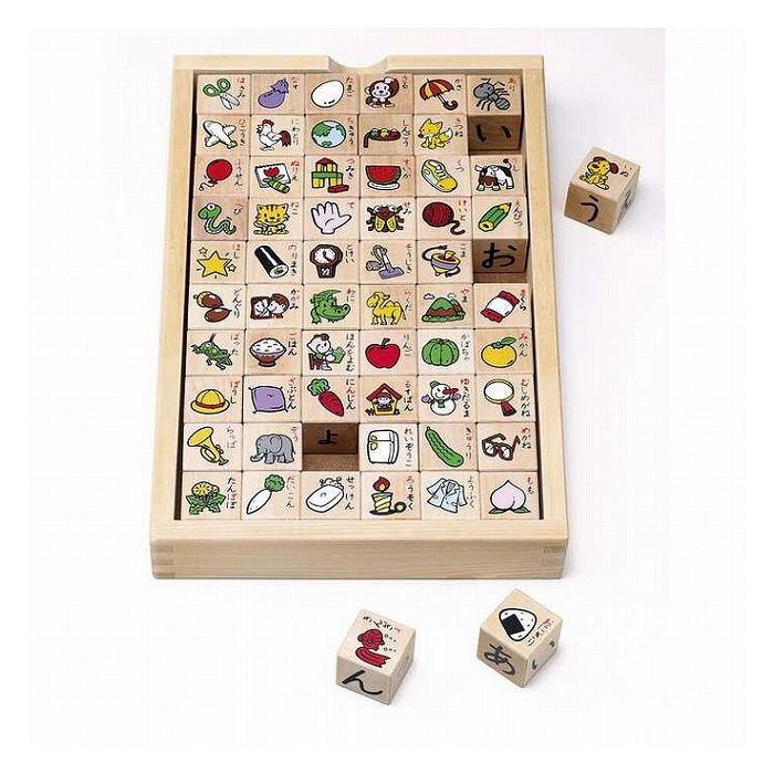立方体のつみきの5面にひらがなが、残りの1面にイラストとことばが印刷されています。お子様の言葉の世界を大きく広げます