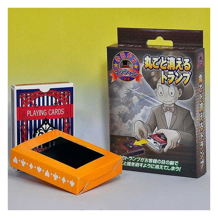 1組のトランプがケースに入ったまま、丸ごと、目の前で消えてしまう…!?「今日からマジシャン」の製品で、初心者の方でもすぐに演じられるトリックです。簡単な組み立て式ですから、「バイスクル」等のトランプをお持ちの方は、お手持ちのケースの一部を利用して、その銘柄の「消えるトランプ」を作ることも可能です。(ギミックと同じトランプケース付き)