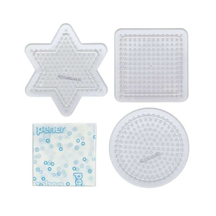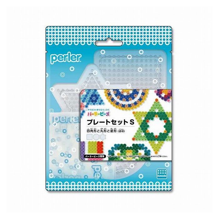 パーラービーズ専用のプレートセットがリニューアル!●透明プレートにぴったりの爽やかなデザインに、創作意欲を刺激する色とりどりの作品をレイアウトしたラベルがポイント。●パッケージをブリスターからプラスチック袋に変えることで、パッケージサイズをスリム化し梱包材を削減。●図案シートに重ねて使える透明プレートは、子どもから大人まで幅広い年齢の方にお手軽にお楽しみいただけます。【セット内容】プレートS 四角形(透明) ×1、プレートS 丸型(透明) ×1、プレートS 星形(透明) ×1、アイロンペーパー×1