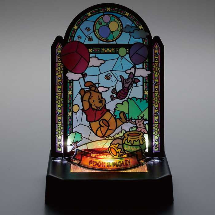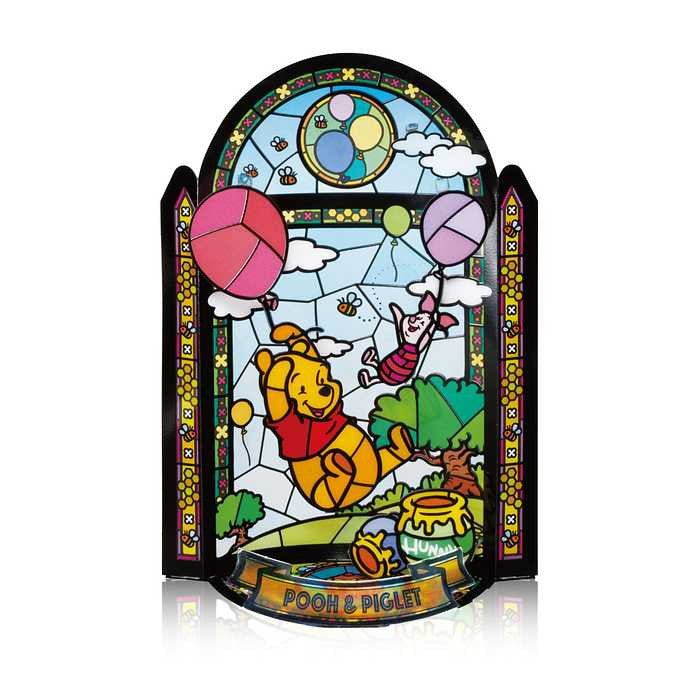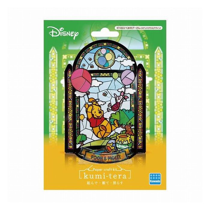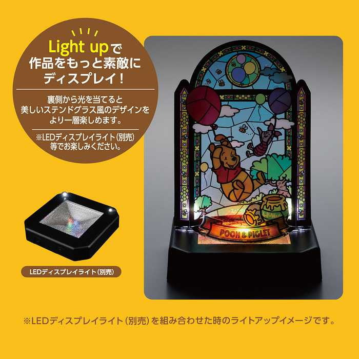組み立て簡単、接着剤不要の「クミテラ」 ステンドグラスシリーズのディズニーキャラクターが新仕様にリニューアル!●くまのプーさんをモチーフに、キャラクターが飛び出して見える不思議なステンドグラスの空間を表現。色鮮やかで飾り映えのある商品です。●印刷された透明のプラスチックシートからパーツを取り外して組立てるだけ。誰でも簡単に組立てることができます。●照明・ライト、また窓際など自然光の当たる場所に飾ると、光に照らされたステンドグラスデザインを楽しめます。●別売のLEDプレートを使用すれば、暗いお部屋でも色鮮やかにライトアップが可能です。