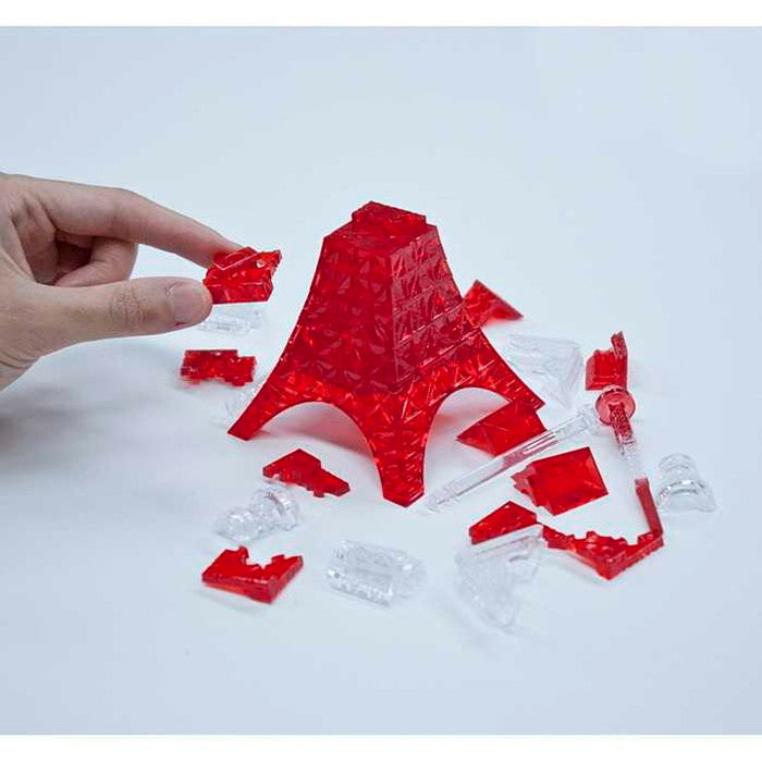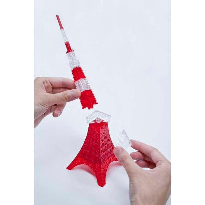 透明ピースを組み上げる立体パズル。東京のシンボル、観光名所として知られる東京タワーが出来上がります。