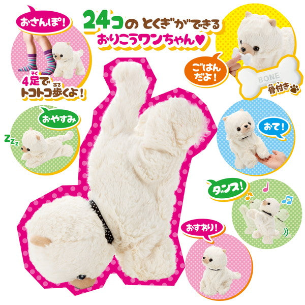わたしのことばがわかるじまんのペット♪ ことばにあった24コのとくぎをひろうするよ! おて、おすわり、ふせやさかだち、ダンスもできちゃう♪エサをあげたり、おさんぽしたり、お世話してね!