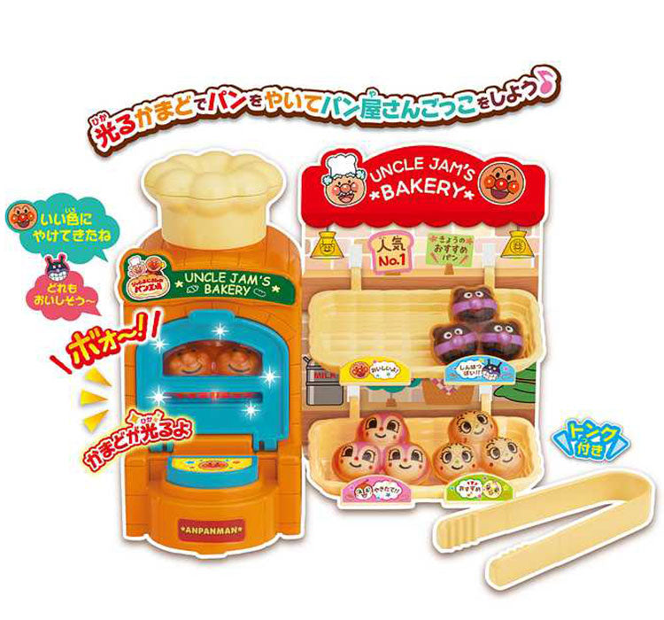 大人気の「ジャムおじさんのやきたてパン工場」が小さくなったよ!光るかまどでパンを焼いてアンパンマンとパン屋さんごっこをしよう♪