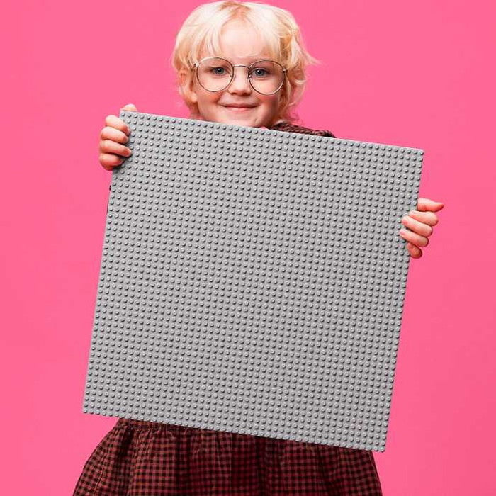 48x48ポッチの基礎板(グレー)は、自由な創造のキャンバスです。街の大通り?お城の中庭?それとも険しい山中?想像力しだいで遊びの可能性が無限に広がります。お子さまの作品をしっかり支える土台として移動やディスプレイにも便利です。